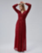 Kadın Bordo Simli Tüllü Kruvaze Yaka Uzun Kollu Kuşaklı Abiye Elbise HV063051