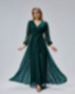 Kadın Haki Simli Tüllü Kruvaze Yaka Uzun Kollu Kuşaklı Abiye Elbise HV06063051
