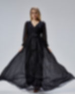Kadın Siyah Simli Tüllü Kruvaze Yaka Uzun Kollu Kuşaklı Abiye Elbise HV063051