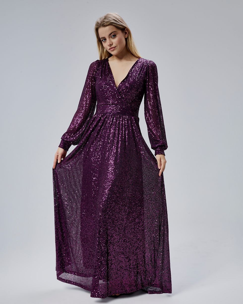 HELVEYS Mor Payetli Kruvaze Uzun Kollu Uzun Abiye Elbise HV06063124